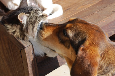 Last weekend, when the family was here, my DIL took pictures around the farm. This picture of Maggie kissing Bella (or was she tasting her?) was so precious I had to post it. To see more of her beautiful photography check out Zebrainfusion.