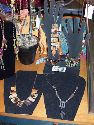 These are pictures of my jewelry at her sale last week. I am having trouble figuring out how to display all of my stuff so that it stands out and doesn’t get too chaotic. Most of the necklaces are hanging on a tree branch. Shawn said that people liked looking at stuff on the tree.